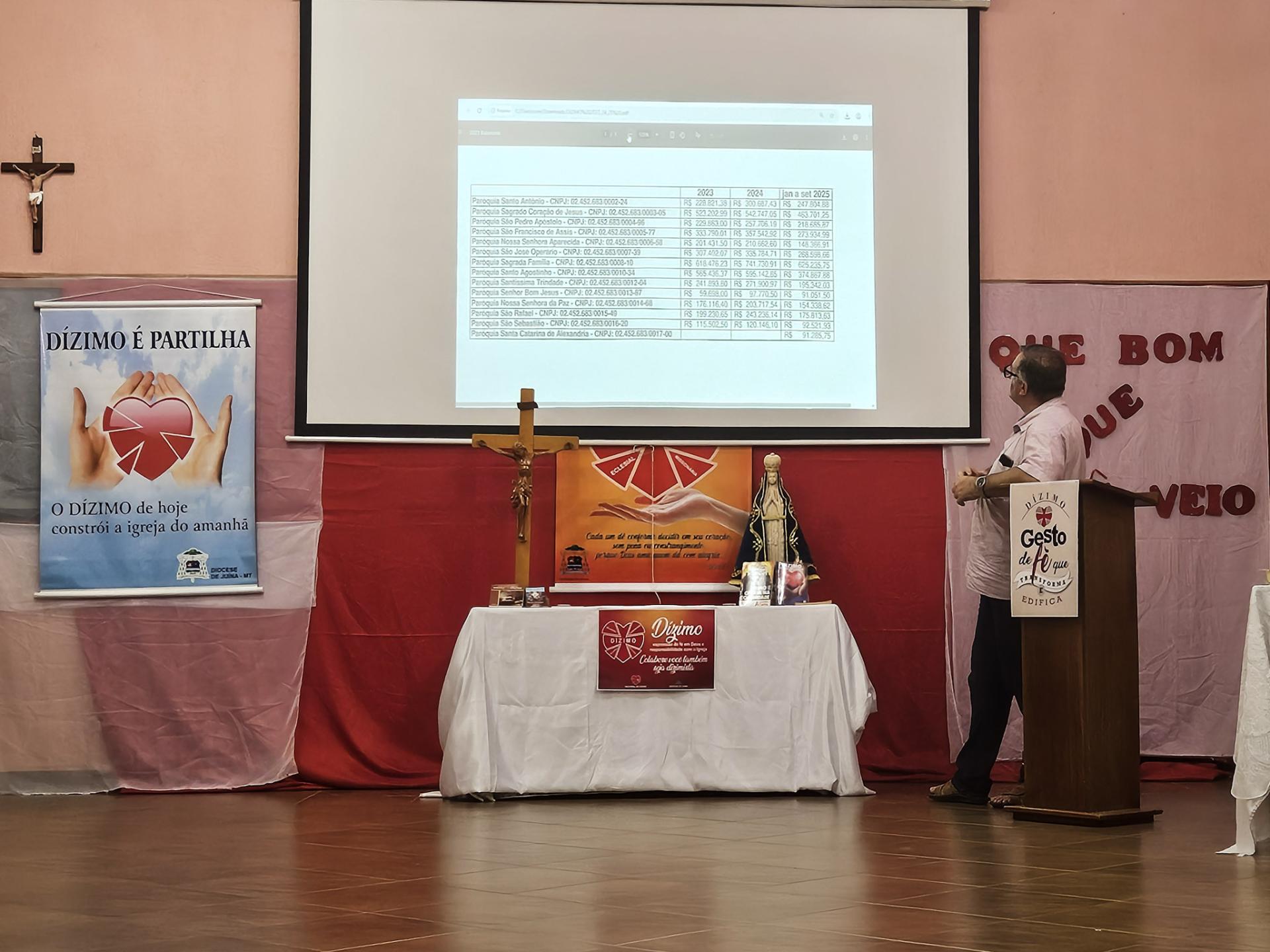 A Diocese de Juína promoveu, no último sábado, dia 18, na Cúria Diocesana, a Assembleia Diocesana da Pastoral do Dízimo, reunindo coordenadores e membros da pastoral das 14 paróquias da diocese. O encontro teve como objetivo avaliar o crescimento pastoral, apresentar a prestação de contas dos últimos anos e traçar novas metas para fortalecer a espiritualidade do dízimo nas comunidades.